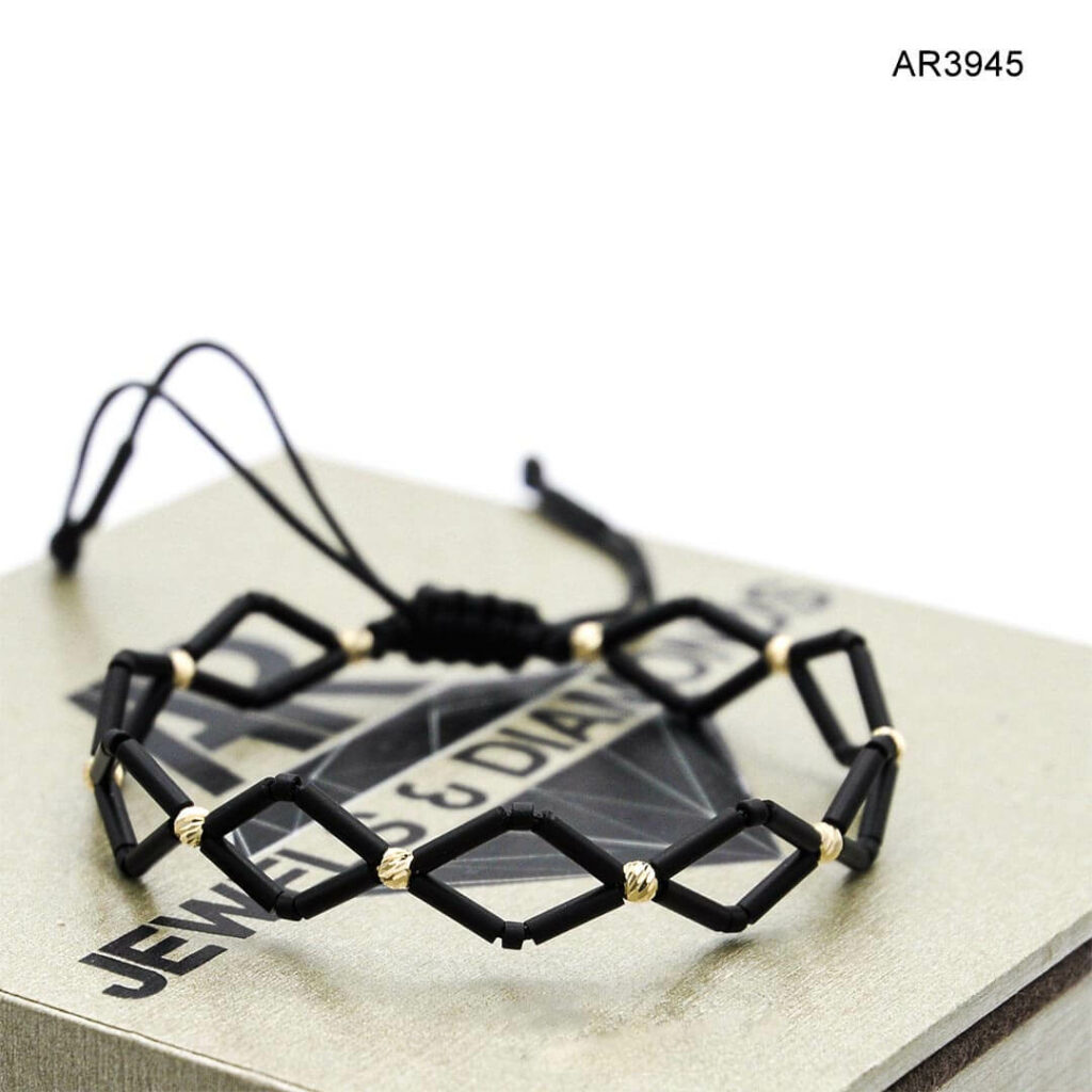 Bratara aur 14K cu snur negru reglabil, AR2743, cu bilute din aur 14K 3 mm si hematit tubular de 2,5 mm