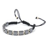 Bratara aur 14K cu snur negru reglabil, AR3045, cu bilute din aur 14K 2,5 mm si pietre hematit 6 x 6 mm