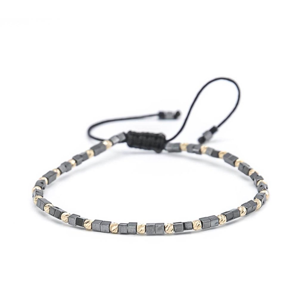 Bratara aur 14K cu snur negru reglabil, AR2795, cu bilute din aur 14K de 2,5 mm si hematit tubular de 2,5 mm