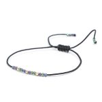 Bratara aur 14K cu snur negru reglabil, AR3047, cu bilute din aur 14K 2,5 mm si pietre hematit multicolor de 2 mm