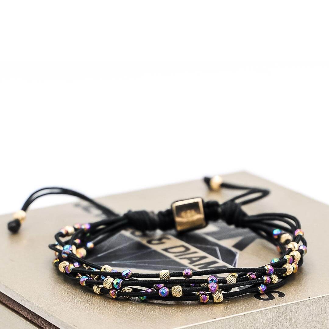 Bratara aur cu snur negru reglabil, AR3103, cu bilute din aur 14K 2,5mm si hematit multicolor 2,5mm