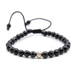 Bratara aur 14K cu snur negru reglabil, AR3341, cu biluta din aur 14K de 6 mm si onix fatetat 6mm