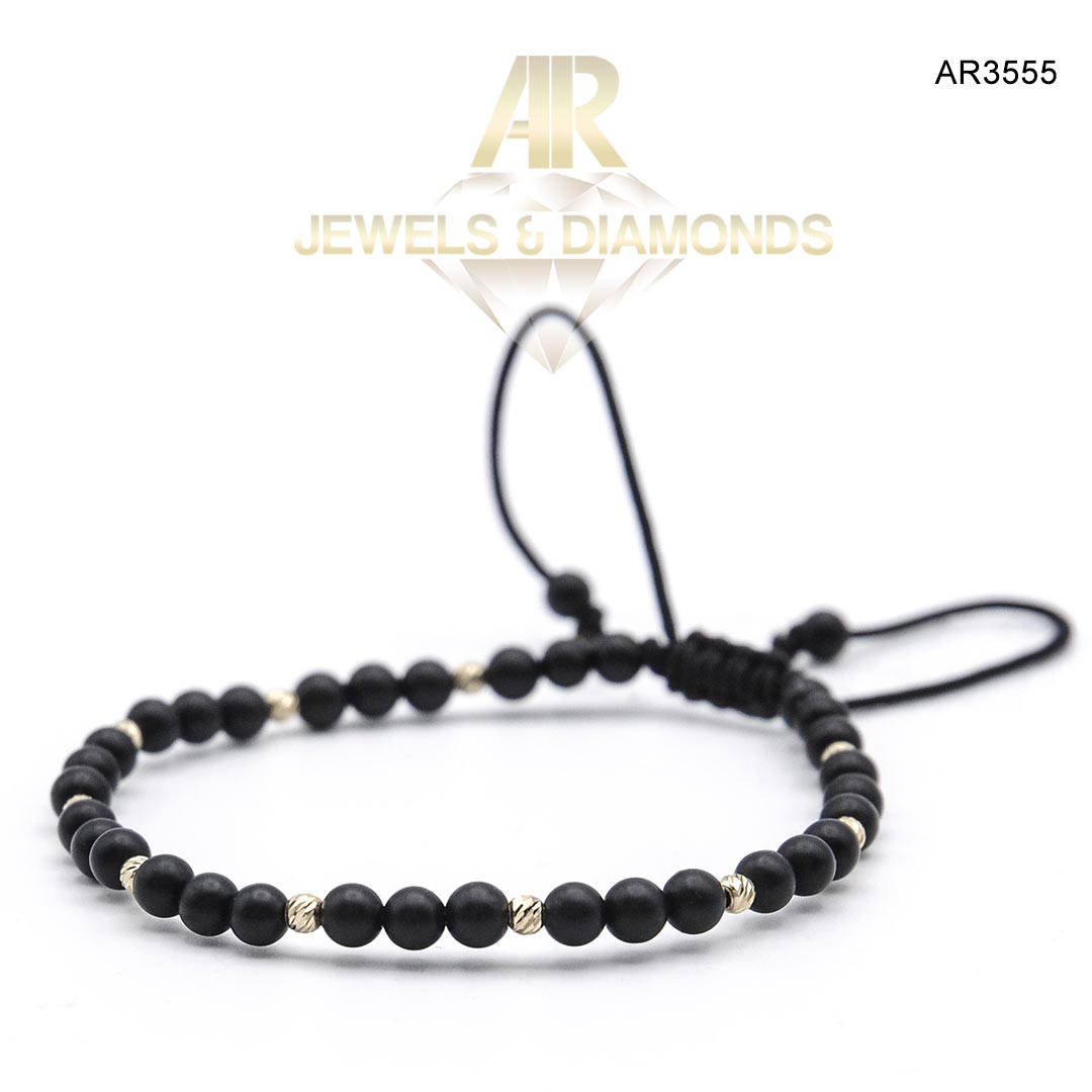 Bratara Aur 14K cu Bile Onyx 4mm [AR3555]