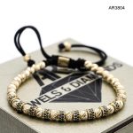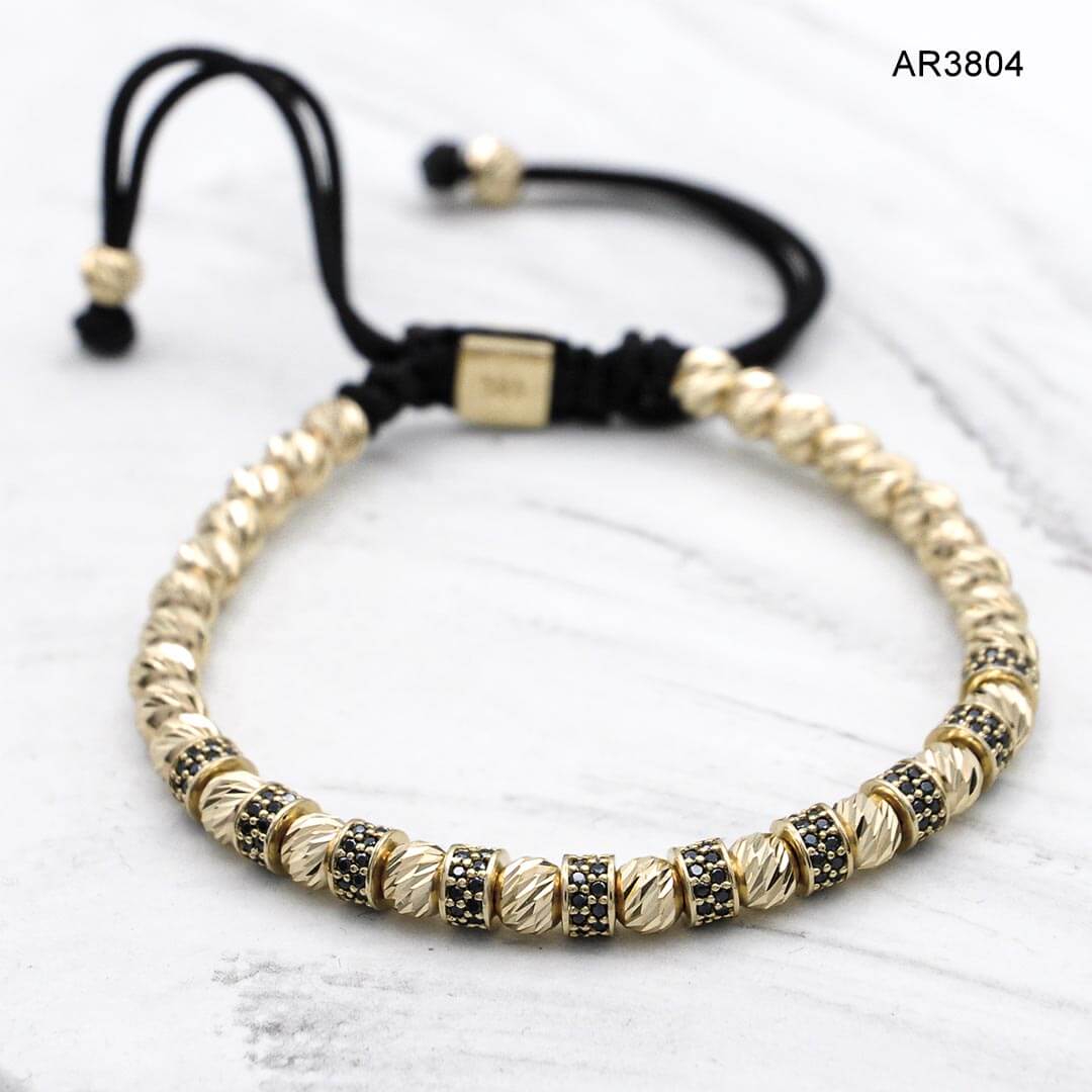 Bratara aur 14K cu snur, AR3804, cu bilute striate aur, 5mm si zirconiu