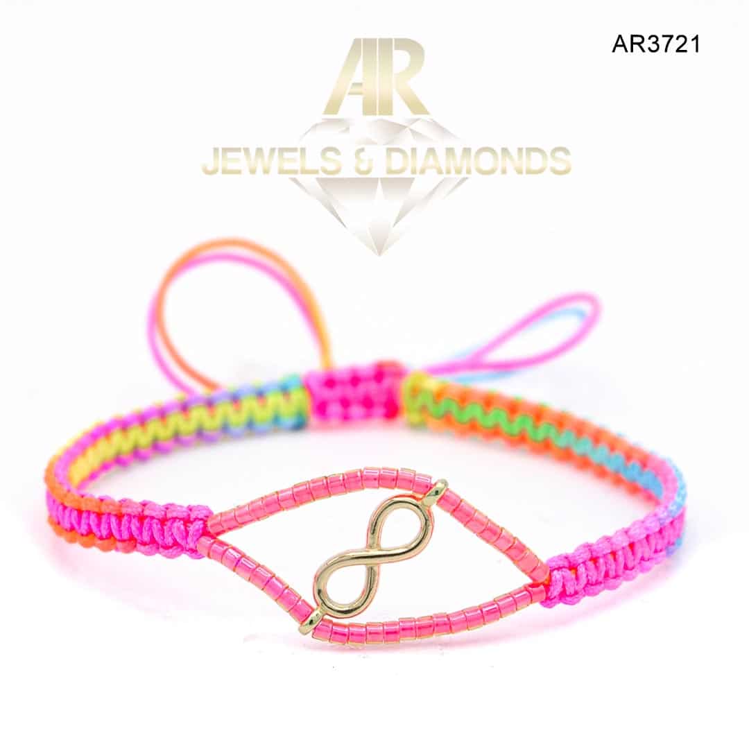 Brățară Aur 14K cu infinit, snur multicolor si pietre Miyuki