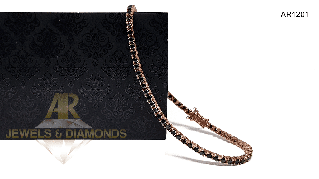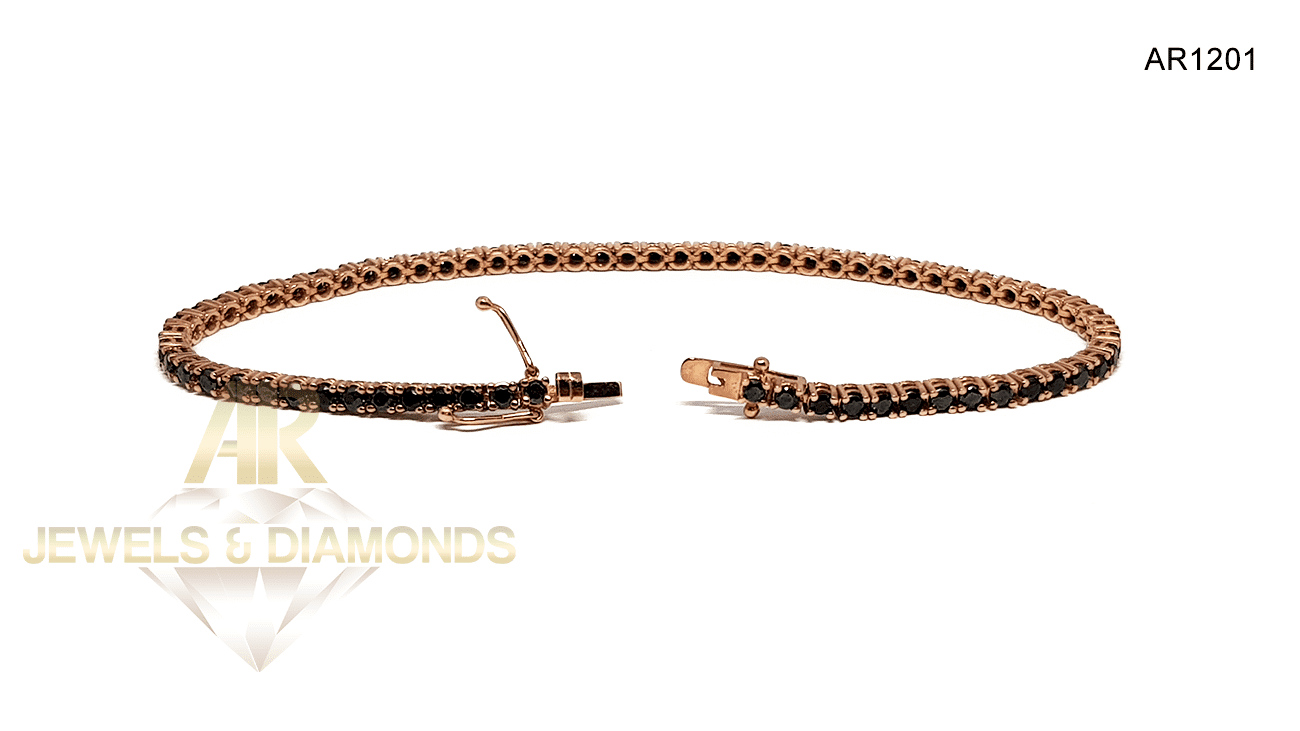 Bratara Tennis Aur Rosé 18K Diamant Negru [AR1201]