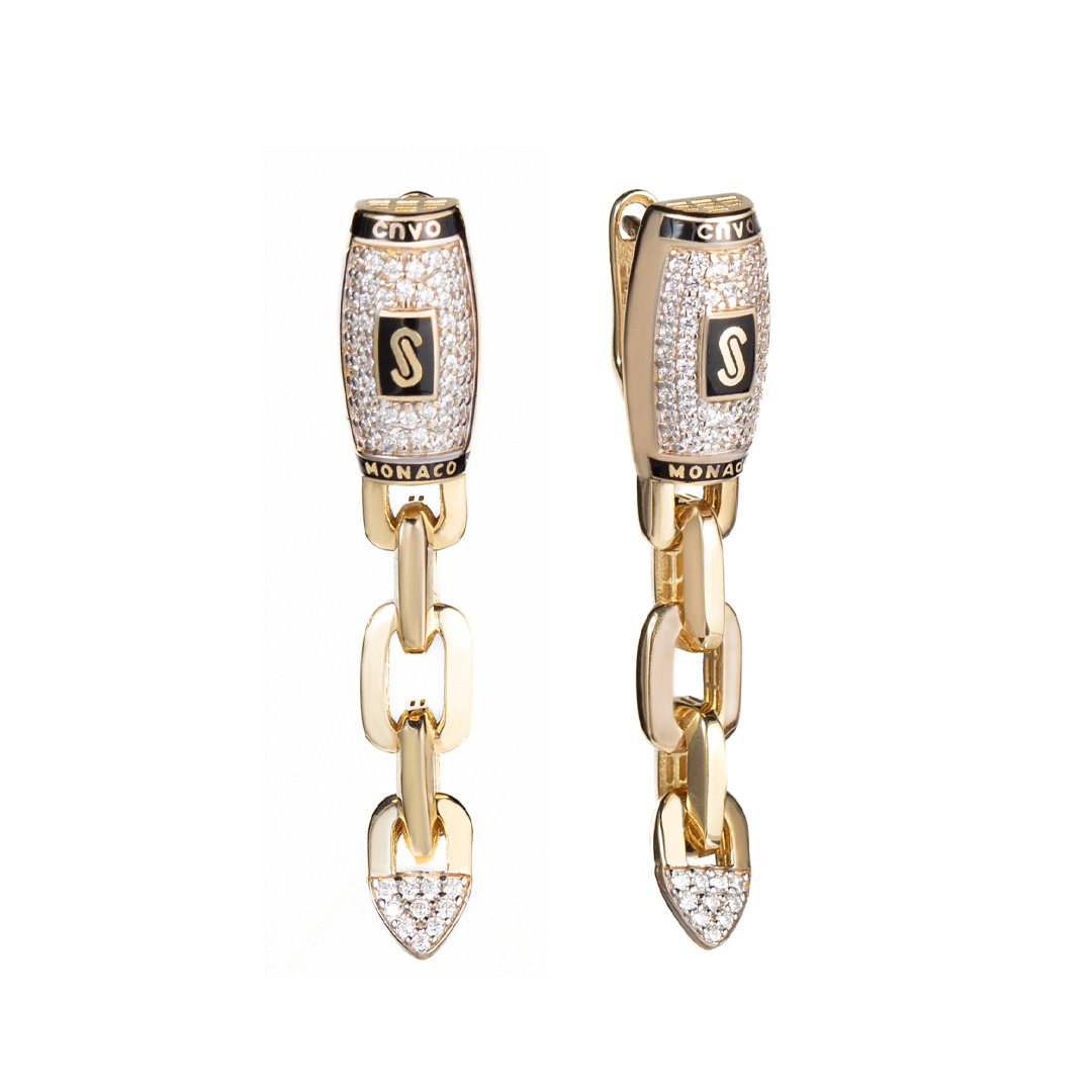 Cercei Monaco Chain ARJEWELS din aur 14K cu cristale de zirconiu natural.