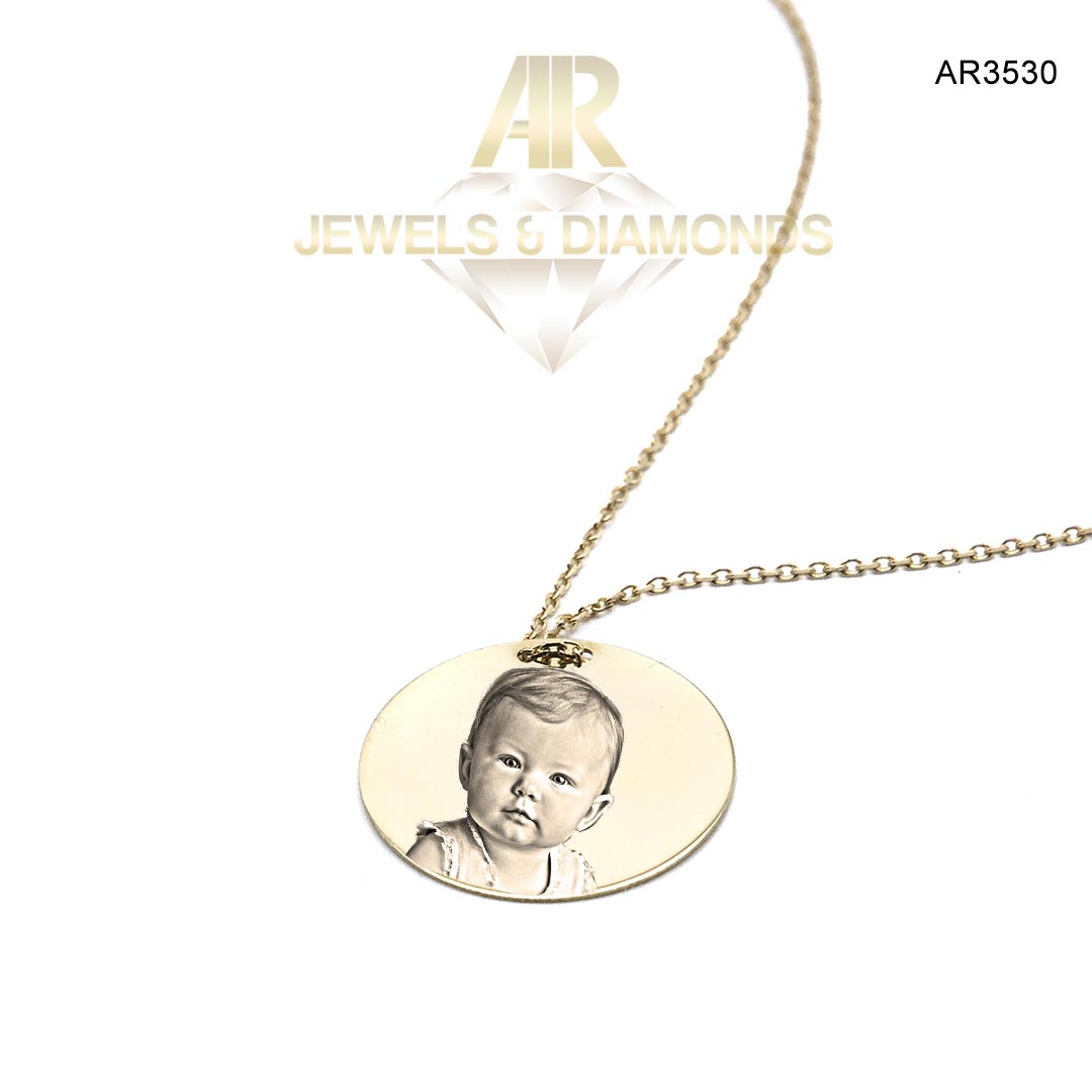 Lănțișor Aur 14K cu Pandantiv rotund personalizat cu poza sau textul dorit