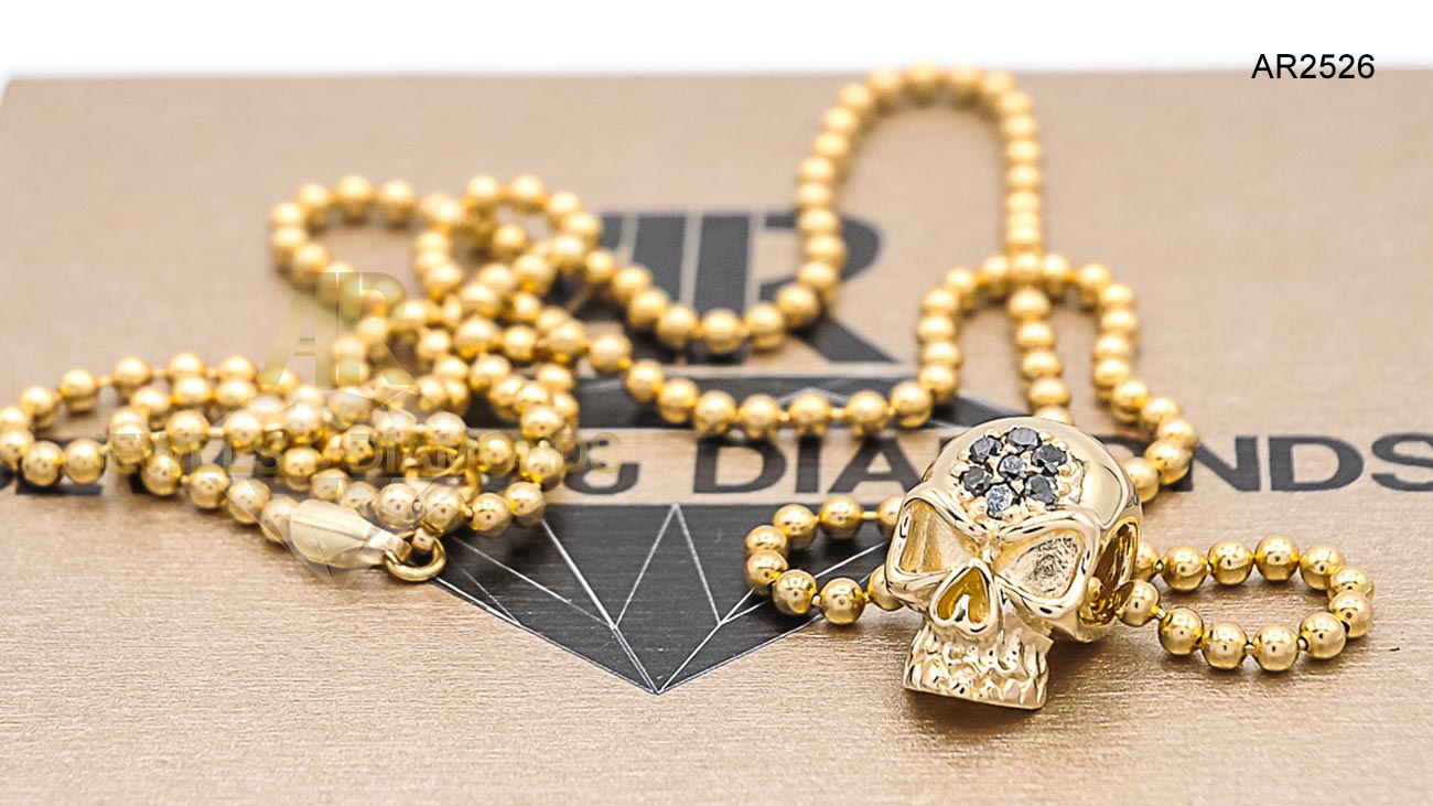 Lantisor Aur 14K cu Pandantiv Skull cu Diamante Negre 18.49gr [AR2526]