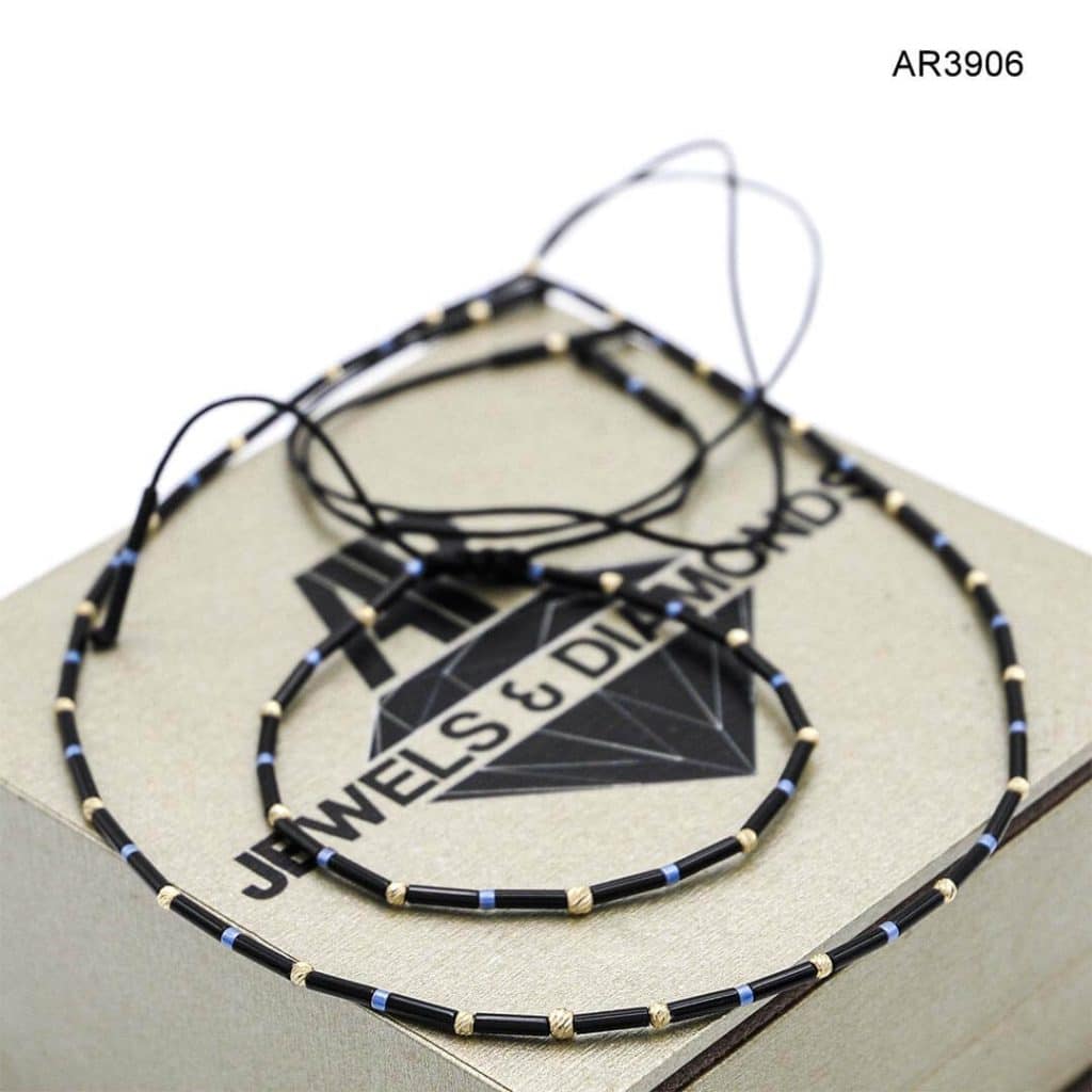 Set choker si bratara aur cu snur, AR3906, cu bilute aur 14K 2 si 2,5 mm si Miyuki 2 si 6 mm